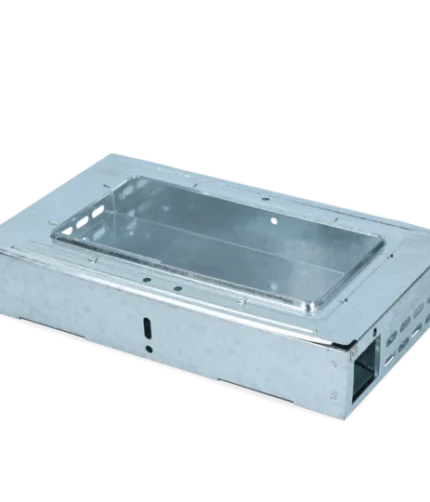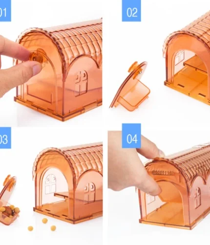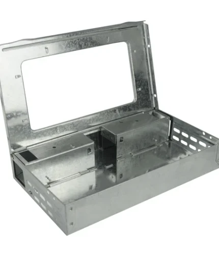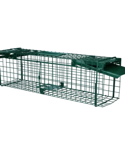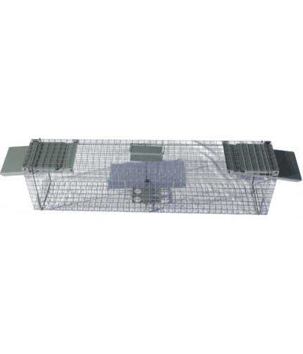 De kooi is vervaardigd uit duurzaam materiaal voor een lange levensduur. De vangkooi is uitgerust met een grote en een kleine opening. De grote opening wordt geactiveerd wanneer een rat het lokaas probeert mee te nemen.